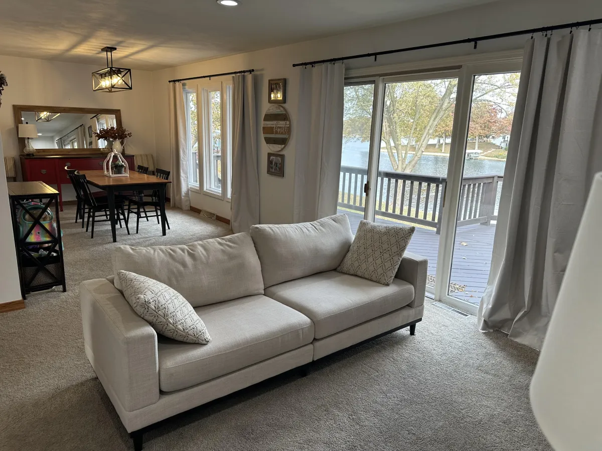 Summer days here are easy to picture — kids in the 30x15 pool, friends gathered on the deck, and evenings down by the beach patio as the sun drops behind the water. The large U-shaped aluminum dock gives you plenty of room for boats, fishing, or just sitting with a cup of coffee when the lake is calm.