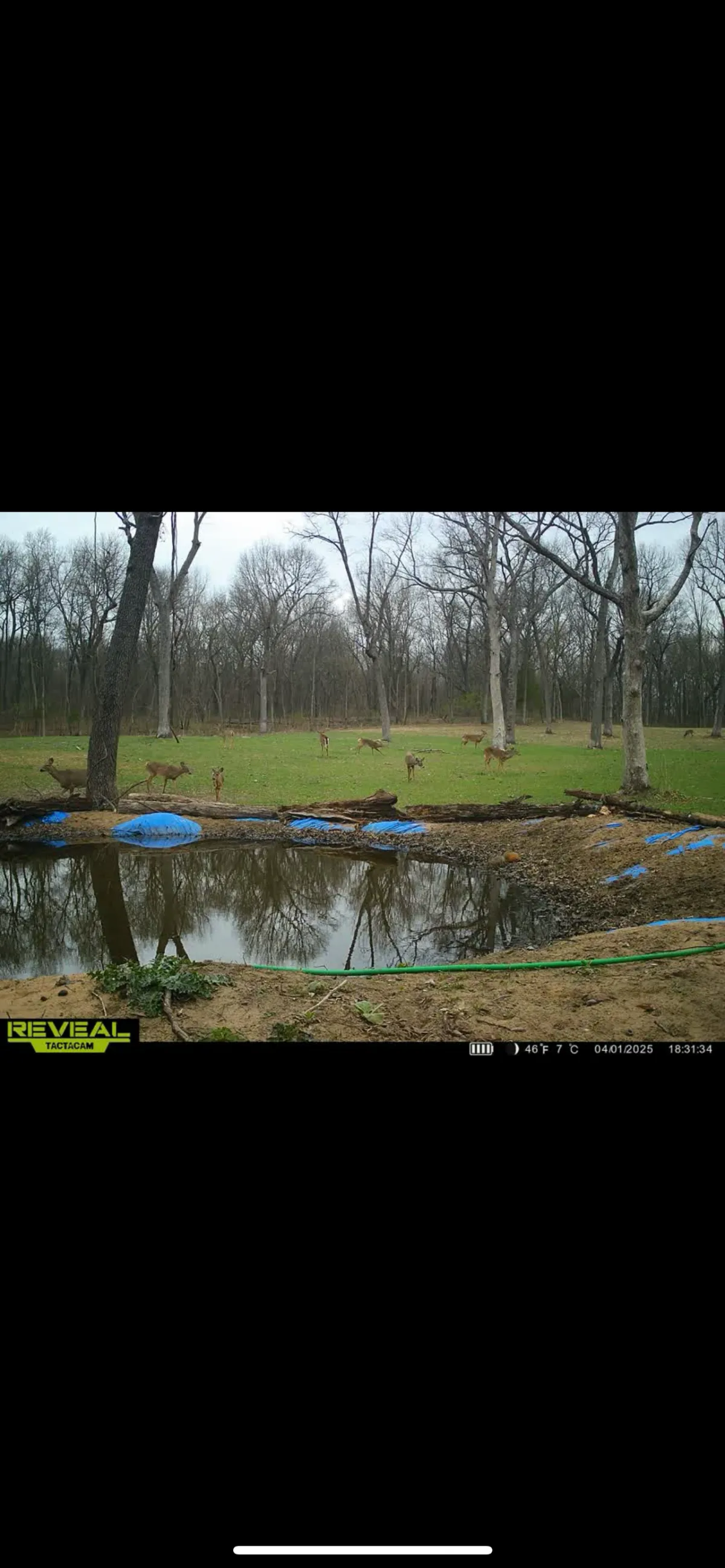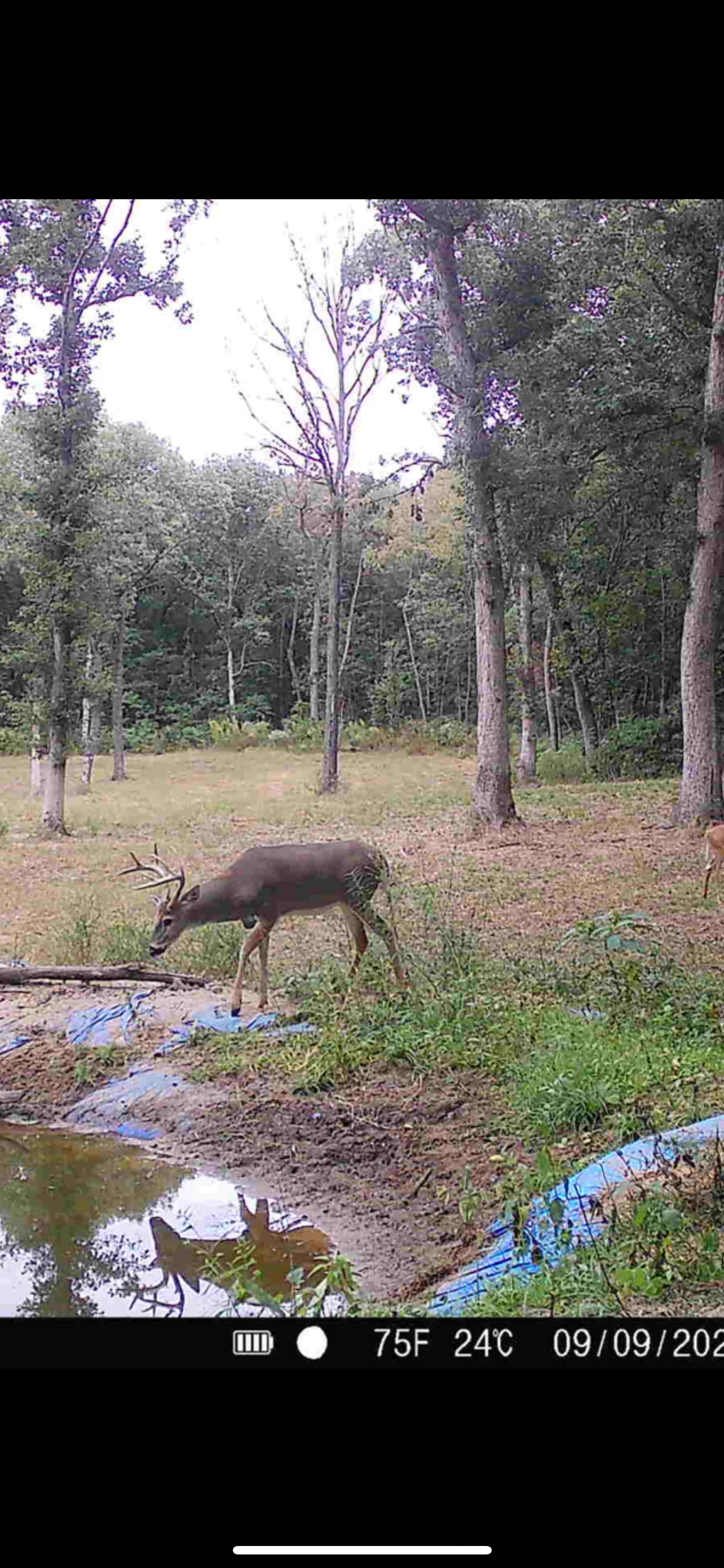 The food plot sits within a natural opening surrounded by timber, creating strong edge habitat and travel corridors for deer and turkey. Fresh sign throughout the property shows how quickly wildlife have responded to the improvements.